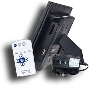 Dimensions: 7.25" x 10" x 1.5"(H x W x D, approximate) Package Includes: 7" TFT LCD Polaroid Widscreen Digital Photo Frame, model XSA-007450B User's Manual Power Adapter (100 - 240V 50/60 Hz), will work all over the world Remote control with battery Stand Warranty: SD cards that will work really well with this frame are here! |