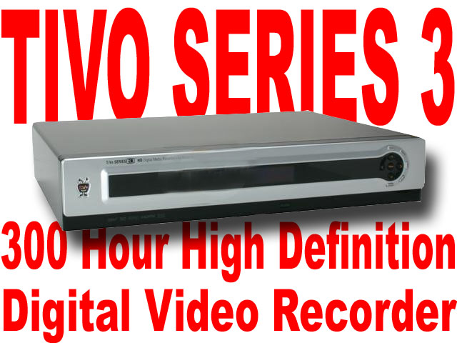![]() TCD648250BThe 648250B features 300 hour capacity for standard quality TV recording Record 2 different channels at once while watching another show! Watching TV will never be the same any more. Factory Sealed Unit, Brand New with FULL Tivo factory Warranty You know what DVR is all about. You know HD. And you know when you see a great thing. This is it. The newest Series3 recorder has features that will make you wonder how you lived without them. It will seamlessly integrate with your HD home theater system. The HDMI output attaches directly to your widescreen TV and the digital optical out feeds THX certified audio to your receiver for true theater sound. the TiVo Serries 3 is the first DVR to be THX certified. It will connect to any cable service via CableCards so it will actually replace your existing cable set-top box. You order CableCards (which replace your decoder) directly from your cable company. TiVo HD Features Record movies in HD: When recording with TiVo HD, you have the option of capturing shows in standard or high definition. Plus, when you play them back, you can easily pause or rewind HD instant replays without ever sacrificing their original razor-sharp HD resolution. Networkable: The TiVo TCD648250B Series3 HD DVR is equipped with an Ethernet port for easy connection to your home network. You can also hook up a dedicated wireless high-speed USB adapter if you don't have a network jack closeby. Access TiVo service via the existing phone line and/or broadband connection with ease!. Download movies from the Internet: Don't see any great movies in your cable program guide? You can easily select a classic or new release from the world's largest movie library at NetFlix, order them with a click of your remote control, and have them downloaded directly to your TiVo box. Access your music library with the remote: When you connect your TiVo DVR to your home network (either wired or wireless!, your HDTV can connect right to millions of songs and playlists available over the Internet. You can now enjoy digital music on the best sound system in the house. Schedule an HD premiere: With TiVo, you can do your TV scheduling from any computer when you are away from home. Log onto TiVo.com, click on a show, and you're done. You will need:
