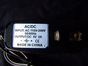 AC Switching Power Adapter suitable for 110V-240V, 50/60 Hz (it will work all over the world - with an adapter plug where needed) with a whopping 2,000mA (= 2A, 2 full amps!)