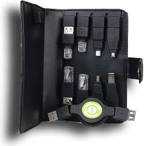Have every USB cable you'll ever need in one easy case! 8 different connectors, including RJ45 and RJ11 Male and Female connectors Retractable 4-foot extension cord